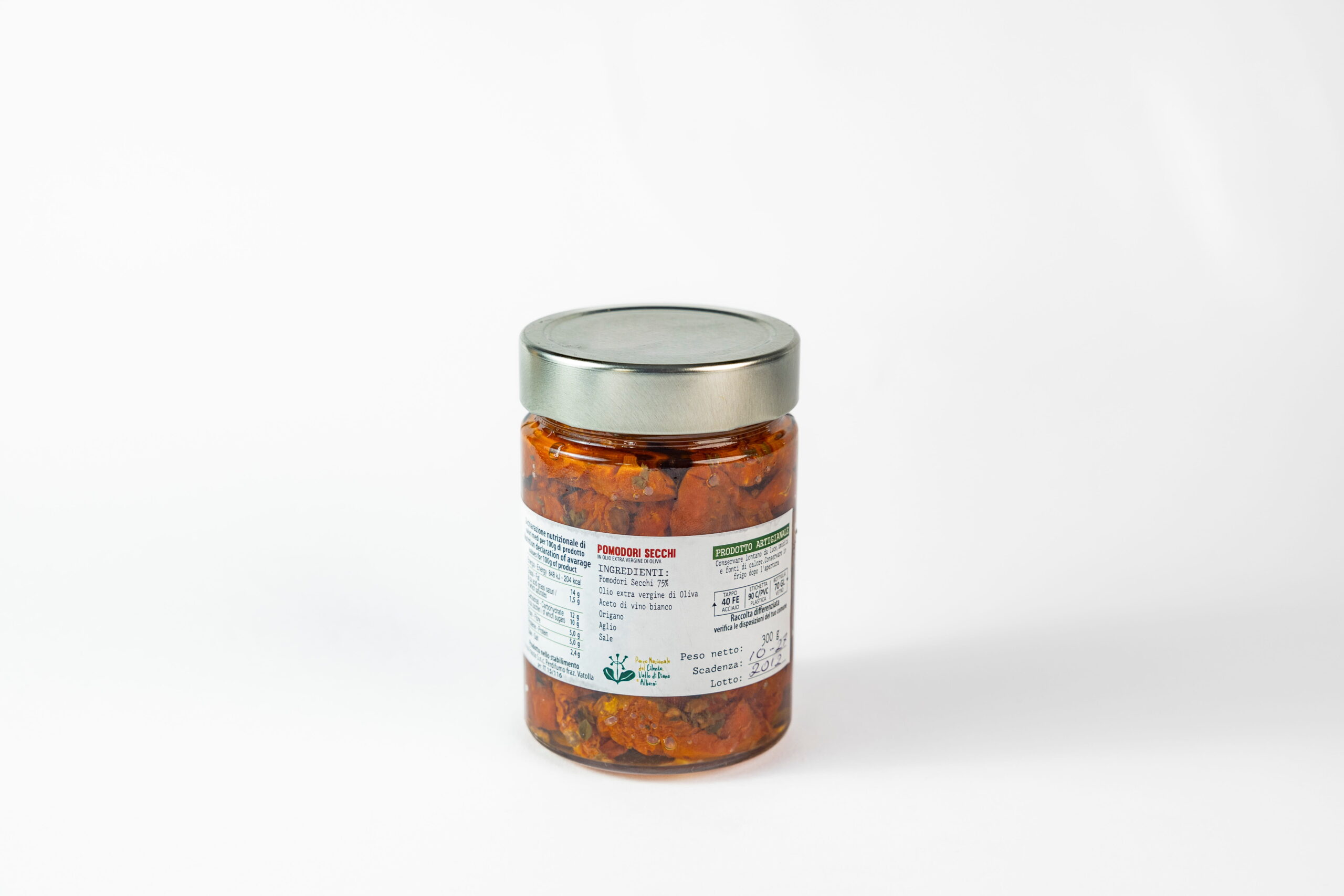 Ingredients: Dried tomatoes 75%, extra virgin olive oil, white wine vinegar, oregano, garlic, salt.