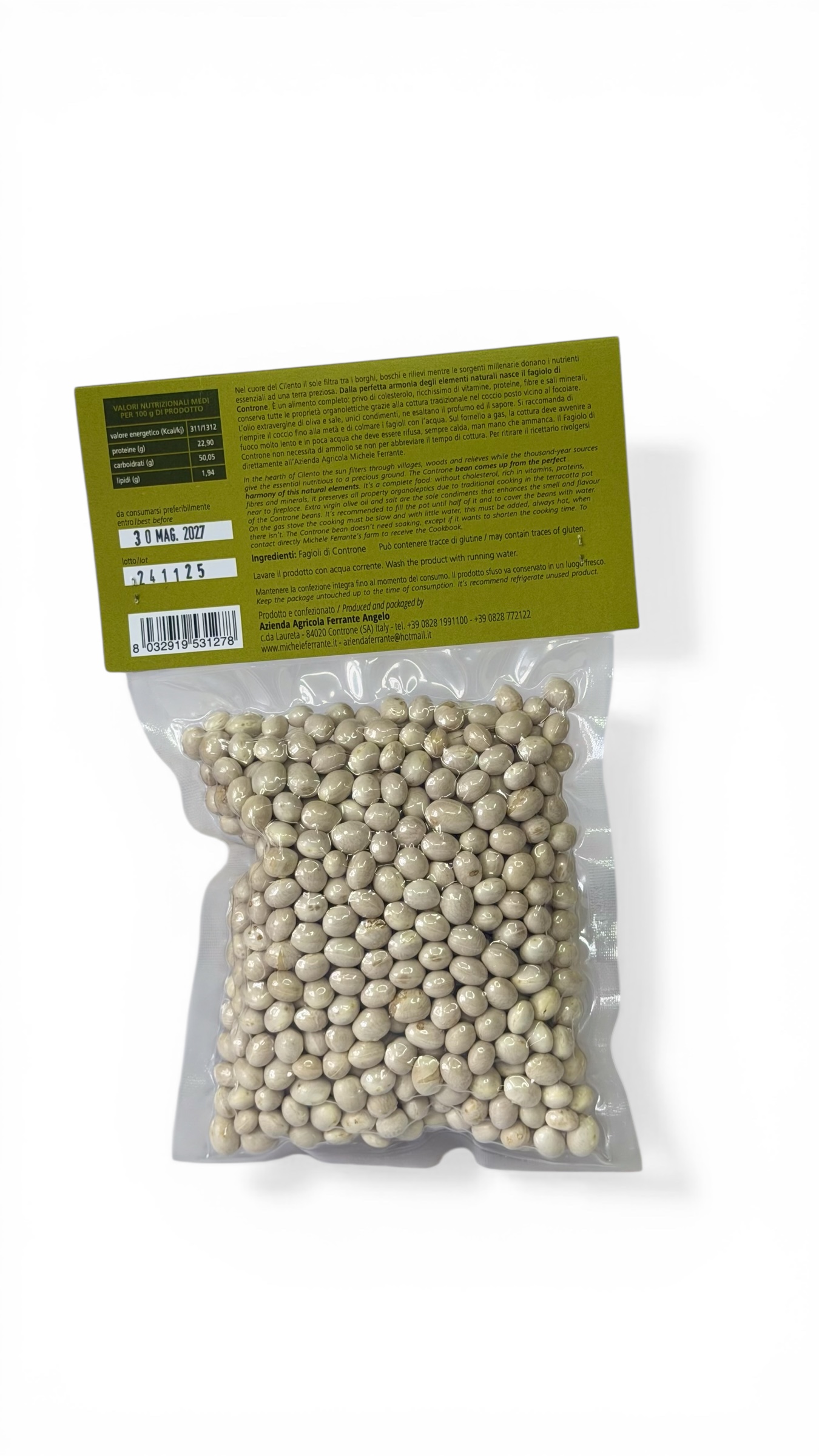 Il Fagiolo di Controne da 300 g è una delle eccellenze più conosciute del Cilento, coltivato nel territorio del piccolo borgo di Controne secondo antiche tradizioni contadine tramandate nel tempo.
